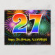 27th Birthday – Fun Fireworks Pattern + Rainbow 27 Postcard