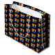 This colourful and vibrant gift bag design features the number "27" having a rainbow spectrum gradient inspired pattern. The background is coloured black. A fun gift bag like this might be used when preparing presents being given to celebrate somebody’s twenty-seventh birthday, or perhaps a married couple’s 27th wedding anniversary, or some other twenty-seventh event. [~Z0000523]
