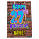 The front of this fun birthday gift bag design features the message “HAPPY 27TH BIRTHDAY,” having a colourful, vibrant, urban street art and graffiti inspired look, along with an editable recipient name. The background features a pattern inspired by the look of a brick wall. A birthday themed gift bag like this might be a fun way to wrap a gift or present being given to somebody who is celebrating their twenty seventh birthday. [~Z0000536]