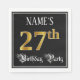 This fancy and elegant birthday paper napkin design features a customisable name and the message “27th Birthday Party”. The large number “27th” has a faux/imitation gold-inspired colouring pattern, the words “Birthday Party” are in luxurious script-style text, and the background is coloured black by default (although it can be customised). Luxurious, ornate paper napkins like this might be useful to have at a birthday celebration being held in celebration of somebody’s 27th birthday. [~Z0000565]