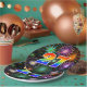 This cheerful, colourful, and fun paper plate design features a large number "27" containing a rainbow spectrum gradient inspired pattern colouring. It also features a exciting and vibrant bursting celebratory fireworks inspired pattern. It has a black coloured background. Paper plates like this might be used at a party celebrating somebody’s 27th birthday, a twenty seventh anniversary, or some other 27th event. [~Z0000490]