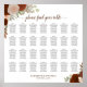 This beautiful 28 table fall floral wedding seating chart features a rustic boho chic design with hand painted watercolor roses and flowers in shades of rust orange, terracotta, coral peach, and burnt umber. There are sprigs of eucalyptus leaves and autumn garden foliage along with an elegant script calligraphy title. The traditional layout has seating assignments for 280 guests with 10 seats per table. Great way to add elegance and style to your wedding reception while making it easy for your guests to find their tables.