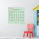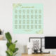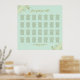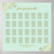 This beautiful wedding seating chart features a simple yet elegant design with gold text on a light green or neo mint colored background. The title is written in script calligraphy lettering and reads: please find your table. The chart is decorated with a frilly floral faux foil gold filigree in the corners. Contains seating assignments for 28 tables at 10 guests per table or 280 guests.