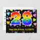 The front of this loving, colourful, and exciting birthday themed postcard design features a large number "28" with a rainbow spectrum gradient inspired pattern, along with the message "Happy 28th Birthday,", and a personalised recipient name. The front additionally has a vibrant and colourful loving heart shapes background pattern. The back features an editable birthday greeting message, or could perhaps be cleared and left blank if a message is to be written by hand instead. A personalised birthday postcard like this might be a fun way to send a message celebrating somebody’s twenty eighth birthday. Postcards like this might also be used to invite guests to a birthday party being held for somebody who is turning 28 years old. [~Z0000448]