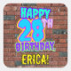 This fun birthday square sticker design features the message “HAPPY 28TH BIRTHDAY,” having a colourful, vibrant, graffiti-inspired appearance, along with a personalised recipient name. The background features a pattern inspired by the look of a brick wall. Vibrant, fun, personalised stickers like this might be given as a birthday gift, or used while wrapping gifts, or perhaps used as a birthday party decoration when celebrating somebody’s twenty eighth birthday. [~Z0000535]
