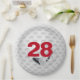 Close-up of white golf ball pattern with a golf club for 28th birthday party.