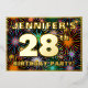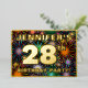 The front of this vibrant and fun twenty-eighth birthday celebration foil invitation card design features a custom name, a large number “28th”, the message “BIRTHDAY PARTY!”, and a border. The background of the front has an exciting, colourful pattern inspired by bursting celebratory fireworks. The back features personalised details about the event, such as the date, time, location/venue, and any other information that may be useful. Customised invitations like these might be a fun way to invite attendees/guests to a birthday party/gathering being held in celebration of somebody’s 28th birthday. [~Z0000602]