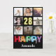 28th Happy Birthday Photo Collage Modern Black Card with personalised name. For further customisation, please click the "Customise it" button and use our design tool to modify this template.