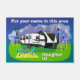 This doormat can be customised to show your name on top. When used outside of your travel trailer, people will know who they are talking to when they see you. Non-slip rubber that won't crack or buckle, this mat resists fading, mould, and mildew and can be easily cleaned with a hose. This version has a trailer similar to a Grand Design Imagine 2970rl trailer. It can be used indoors or out and makes a great welcome mat for your campsite, wherever you may go.