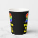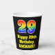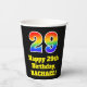 This exciting and colourful birthday paper cup design features a large number “29” with a rainbow spectrum gradient inspired pattern, along with the message “Happy 29th Birthday,”, and a custom name. The background is coloured black. Vibrant, colourful paper cups like this might be fun to have at a birthday celebration/party being held to celebrate somebody’s twenty ninth birthday. [~Z0000537]