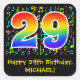This fun, colourful, and vibrant birthday themed sticker design features a large number "29" having a rainbow spectrum gradient inspired pattern. It also features the message "Happy 29th Birthday,", and a personalised name. Part of the background has a colourful music notes and symbols pattern. Birthday-themed stickers like this might be fun to use as a birthday party decoration, or perhaps give as a birthday present, or perhaps be used when wrapping birthday gifts being given in celebration of a singer’s, a song composer’s, a musician’s, or somebody else’s 29th birthday. [~Z0000423]