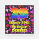 This fun and happy birthday-themed paper napkin design features a large number “29” having a rainbow spectrum gradient inspired pattern. It also features the message “Happy 29th Birthday,”, and a customisable name. The background features a pattern of purple, pink, and red heart shapes. Upbeat, friendly paper napkins like this might be fun to use at a birthday celebration/party being held to celebrate somebody’s twenty ninth birthday. [~Z0000550]