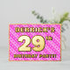 The front of this joyful and upbeat twenty-ninth birthday celebration foil invitation card design features an editable name, a large number “29th”, the message “BIRTHDAY PARTY!”, and a border. The background of the front features a loving dark pink and light pink striped pattern containing heart shapes. The back features personalised details about the event, such as the date, time, venue, and any other important information. Customisable invitations like these might be a fun way to invite attendees to a birthday party being held to celebrate somebody’s 29th birthday. [~Z0000603]