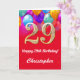 29th Birthday Red and Gold Colourful Balloons Card