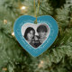 Celebrate a 29th happy year of marriage with a custom photo ornament in a delightful heart shape frame. Simply upload your own photo of the married couple and it will appear in the cutout. The aqua surround features a white script font and decorations. The words are: 29th Wedding Anniversary - 29 years of love - 29 years of joy. On the back you can personalize this keepsake with your own message and can also add the year or a full date if you prefer. Note: if you like the twenty-nine year anniversary ornament but have your heart set on a different color, please contact me.