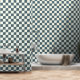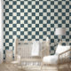 2" Chequerboard Dark Teal Blue & Ivory White Wallpaper