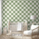 2" Chequerboard Sage Green & Ivory White Wallpaper