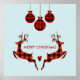 2 Christmas Deer Jumping Rustic Style Poster