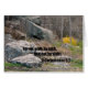 2 Corinthians 5:7 - For we walk by faith, and not by sight. Scene is of a rocky outdoor woods area.