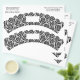 2 on each sheet on cover stock Damask design Custom Cupcake Wrappers for Party. Personalised Cupcake Wrappers Fits standard size cupcakes. Each measure about 10.5 x 3.75 inches. After receiving them, cut out, wrap your cupcake or muffin & secure with double sided tape or a small piece of regular clear tape. You can use decorative deckle edge scissors for an added touch.