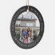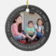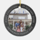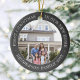 Celebrate the joy of your new place with a custom two photo "First Christmas in our New Home" faux chalkboard round ceramic ornament. All text and pictures on this template are simple to personalize, and can be different or the same on front and back. (IMAGE & TEXT DESIGN TIPS: 1) To adjust position of wording, add spaces at beginning or end. 2) To center the photo exactly how you want, crop it into a square shape before uploading to the Zazzle website.) Design features a stylish faux black chalkboard border, modern minimalist typography family name and year, and 2 images of your choice. This unique family keepsake adds an elegant touch to Xmas home decorations or makes a thoughtful housewarming realtor gift idea. There's no place like a new home for the holidays!