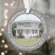 Celebrate the joy of your new place with a custom two photo "First Christmas in our New Home" grey and white round acrylic ornament. All text and pictures on this template are simple to personalise, and can be different or the same on front and back. (IMAGE & TEXT DESIGN TIPS: 1) To adjust position of wording, add spaces at beginning or end. 2) To centre the photo exactly how you want, crop it into a square shape before uploading to the Zazzle website.) Elegant grey and white border design features stylish modern minimalist typography name & year, and 2 images of your choice. This unique family keepsake adds a stylish touch to Xmas home decorations or makes a thoughtful housewarming realtor gift idea. There's no place like a new home for the holidays!