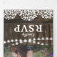 A 2 in 1 rustic country graduation party trifold invitation featuring a rustic wooden barrel background, twinkle string lights, delicate babys breath floral pattern, photos of the graduate, the class year, graduation celebration details, and an rsvp postcard for your guests to cut off and send back.