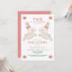 Sweet spring twin girls baby shower invitation. Two Little Bunnies are on their way, Girl Twins Baby Shower Invitation. Girl twin baby shower invite with sweet bunnies wearing coral pink bows.