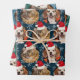 2 Pet Photo Santa Hat on Heads Blue Teal Wrapping Paper Sheet