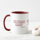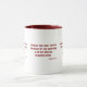 This mug features the 2 Peter 1:20 KJV bible scripture in a bold print font with maroon letters and citation. The rim & handle are glazed in matching colours available in 11-ounce or 15-ounce sizes microwave and dishwasher safe ceramic construction.