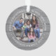 Celebrate the joy of your new place with a custom two photo "First Christmas in our New Home" round faux wood acrylic ornament. All text and pictures on this template are simple to personalise and can be different or the same on front and back. (IMAGE & TEXT DESIGN TIPS: 1) To adjust position of wording, add spaces at beginning or end. 2) To centre the photo exactly how you want, crop it into a square shape before uploading to the Zazzle website.) Modern farmhouse style design features a rustic grey faux wood background, stylish typography name and year, and 2 images of your choice. This unique family keepsake adds an elegant touch to Xmas home decorations or makes a thoughtful housewarming realtor gift idea. There's no place like a new home for the holidays!