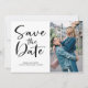 Modern 2 photo wedding Save the Date card with text in a modern brush script font. Let friends and family know your date and where you will be getting married so they can begin making plans.
