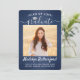 2 Photo Brushed Navy Blue White Script Graduation Announcement