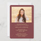 Share the joy of a high school or college graduation with these custom 2 photo burgundy and gold announcements. (IMAGE PLACEMENT TIP: An easy way to centre a picture exactly how you want is to crop it before uploading to the Zazzle website.) This template includes graduate name, class year & school, and is simple to customise with any wording of your choice, such as party invitation details, parents' names, special honours, degree title, favourite inspirational quote, graduate's contact info, future education plans, or new job position. If there's any text not wanted simply delete it. Design features a maroon red ombre background, faux foil mortar board cap, handwritten style script calligraphy, modern minimalist typography, and two photos of your choice, such as senior pictures or images from the commencement ceremony. Please note that gold is printed colour, not metallic foil. These elegant graduation announcement cards are a trendy and chic way to share your special day celebration with family and friends. Congratulations to the graduate!