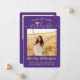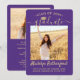 Share the joy of a high school or college graduation with these custom 2 photo purple and gold announcements. (IMAGE PLACEMENT TIP: An easy way to centre a picture exactly how you want is to crop it before uploading to the Zazzle website.) This template includes graduate name, class year & school, and is simple to customise with any wording of your choice, such as party invitation details, parents' names, special honours, degree title, favourite inspirational quote, graduate's contact info, future education plans, or new job position. If there's any text not wanted simply delete it. Design features a purple ombre background, faux foil mortar board cap, handwritten style script calligraphy, modern minimalist typography, and two photos of your choice, such as senior pictures or images from the commencement ceremony. Please note that gold is printed colour, not metallic foil. These elegant graduation announcement cards are a trendy and chic way to share your special day celebration with family and friends. Congratulations to the graduate!