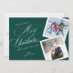 Personalised 2 Photo Collage Merry Christmas 2 Photo Collage Elegant Script Green White Holiday Card