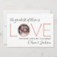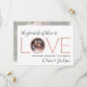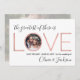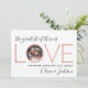 Announce the joyful news of your engagement and upcoming wedding with unique custom photo save the date invitations. The 2 pictures and all wording on this template are simple to personalize. The magnetic back makes them easy for friends and family to display. (IMAGE PLACEMENT TIP: An easy way to center a photo exactly how you want is to crop it before uploading to the Zazzle website.) The white, pink and black design features two pictures of the engaged couple, modern minimalist typography, and the word "LOVE" in faux rose gold foil as part of the phrase "the greatest of these is love" from the Corinthians Bible verse. Please note that rose gold is printed color, not metallic foil. This stylish announcement note card is an elegant way to inform friends and family of your upcoming special day celebration. Congratulations to the bride and groom!