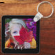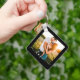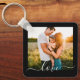 Fully customisable 2 photo template double sided love text metal keychain on black.
