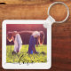 Fully customisable 2 photo template double sided love text metal keychain on white.