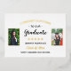Congratulations To Our Graduate. A simple custom 2 photo and typography design to celebrate the achievement of a loved one who has graduated from high school or college. Replace each image with a vertical picture of the graduate. The black and gold text can be customised and personalised with the name and class of the graduate and their high school or college. The special celebration design is yours to customise and personalise as you wish.