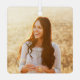 Commemorate the graduate's achievement with a custom 2 photo square graduation Christmas ornament. Pictures and all text are simple to customize and can be different on front and back. (IMAGE PLACEMENT TIP: An easy way to center a photo exactly how you want is to crop it before uploading to the Zazzle website.) Include any favorite inspirational quote, motivational saying, school name and degree, congratulations, thanks mom and dad, or other message of your choice. The design features a black mortar board cap, handwritten style script calligraphy, stylish modern minimalist typography, and two photos of your choice, such as senior pictures or images from the commencement ceremony. Makes a thoughtful keepsake graduation gift idea. Congratulations to the graduate!