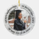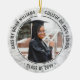 Commemorate the graduate's achievement with an elegant black and white faux marble custom two photo round graduation Christmas ornament. Pictures and all text are simple to customise and can be different on front and back. Include any favourite inspirational quote, motivational saying, school name and degree, congratulations, thanks mum and dad, or other message of your choice. Design features a grey & white marble look border, personalised modern typography name, school, & class year in a circle, and 2 photos of the graduate, such as senior pictures or images from the commencement ceremony. Makes a thoughtful keepsake graduation gift idea.
