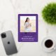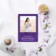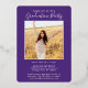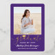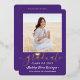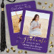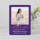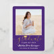 Invite family and friends to celebrate a high school or college graduation with stylish custom 2 photo purple, white and gold foil invitations. Pictures and wording are simple to personalise. (IMAGE PLACEMENT TIP: An easy way to centre a photo exactly how you want is to crop it before uploading to the Zazzle website.) Front of design is printed with real metallic foil on a purple background. It features a mortar board cap, handwritten style script calligraphy, elegant modern typography, and two photos of your choice, such as senior pictures or images from the commencement ceremony. This elegant graduation invitation card is a trendy and chic way to begin your special day celebration. Congratulations to the graduate!