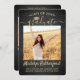 Share the joy of a high school or college graduation and invite family and friends to celebrate with these custom 2 photo black and gold party invitations. All pictures and wording are simple to personalise. (IMAGE PLACEMENT TIP: An easy way to centre a picture exactly how you want is to crop it before uploading to the Zazzle website.) This template is formatted for a graduation party, but can easily be customised as an open house invite or announcement card. Simply change the text to include any details of your choice, such as parents' names, special honours, degree title, favourite inspirational quote, graduate's future plans or new address. If there's any text not wanted simply delete it. Design features a black brushed background, faux foil mortar board cap, handwritten style script calligraphy, modern minimalist typography, and two photos of your choice, such as senior pictures or images from the commencement ceremony. Please note that gold is printed colour, not metallic foil. These elegant graduation announcement cards are a stylish way to share your special day celebration with family and friends. Congratulations to the graduate!