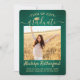 Share the joy of a high school or college graduation and invite family and friends to celebrate with these custom 2 photo green and gold party invitations. All pictures and wording are simple to personalize. (IMAGE PLACEMENT TIP: An easy way to center a picture exactly how you want is to crop it before uploading to the Zazzle website.) This template is formatted for a graduation party, but can easily be customized as an open house invite or announcement card. Simply change the text to include any details of your choice, such as parents' names, special honors, degree title, favorite inspirational quote, graduate's future plans or new address. If there's any text not wanted simply delete it. Design features a green brushed background, faux foil mortar board cap, handwritten style script calligraphy, modern minimalist typography, and two photos of your choice, such as senior pictures or images from the commencement ceremony. Please note that gold is printed color, not metallic foil. These elegant graduation announcement cards are a stylish way to share your special day celebration with family and friends. Congratulations to the graduate!