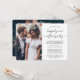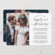Invite family and friends to a simply elegant reception-only wedding celebration with this stylish modern 2 photo invitation. All wording is simple to personalise for a 1st anniversary, vow renewal ceremony, sequel wedding, post-elopement or dinner party. Customise it to include any details of your choice, such as marriage date, dress code, rsvp, website, etc. (IMAGE PLACEMENT TIP: An easy way to centre a photo exactly how you want is to crop it before uploading to the Zazzle website.) The modern minimalist black and white design features two pictures of the newlywed couple, trendy handwritten script calligraphy, and chic typewriter style typography.Whether you eloped, had a smaller downsized minimony or micro wedding, or your special day celebration had to be rescheduled due to a covid pandemic related postponement, the happily ever after party can still get started. Congratulations to the bride and groom!