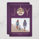 2 Photo Joy Christmas Ornament Chic Purple & Gold Holiday Card