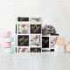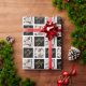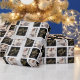 This modern wrapping paper features a repeating grid pattern of alternating text and images where you can add your own family photos. In half o the squares, seasonal phrases ("Merry Christmas" and "Happy New Year") appear in gold faux foil script on a black background. Easily replace the sample images in the other squares with two of your own favourite photos.