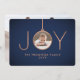 2 Photo Modern Minimalist Joy Navy Blue Copper Holiday Card