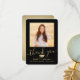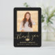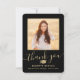 2 Photo New Address Black & Gold Script Graduation Thank You Card